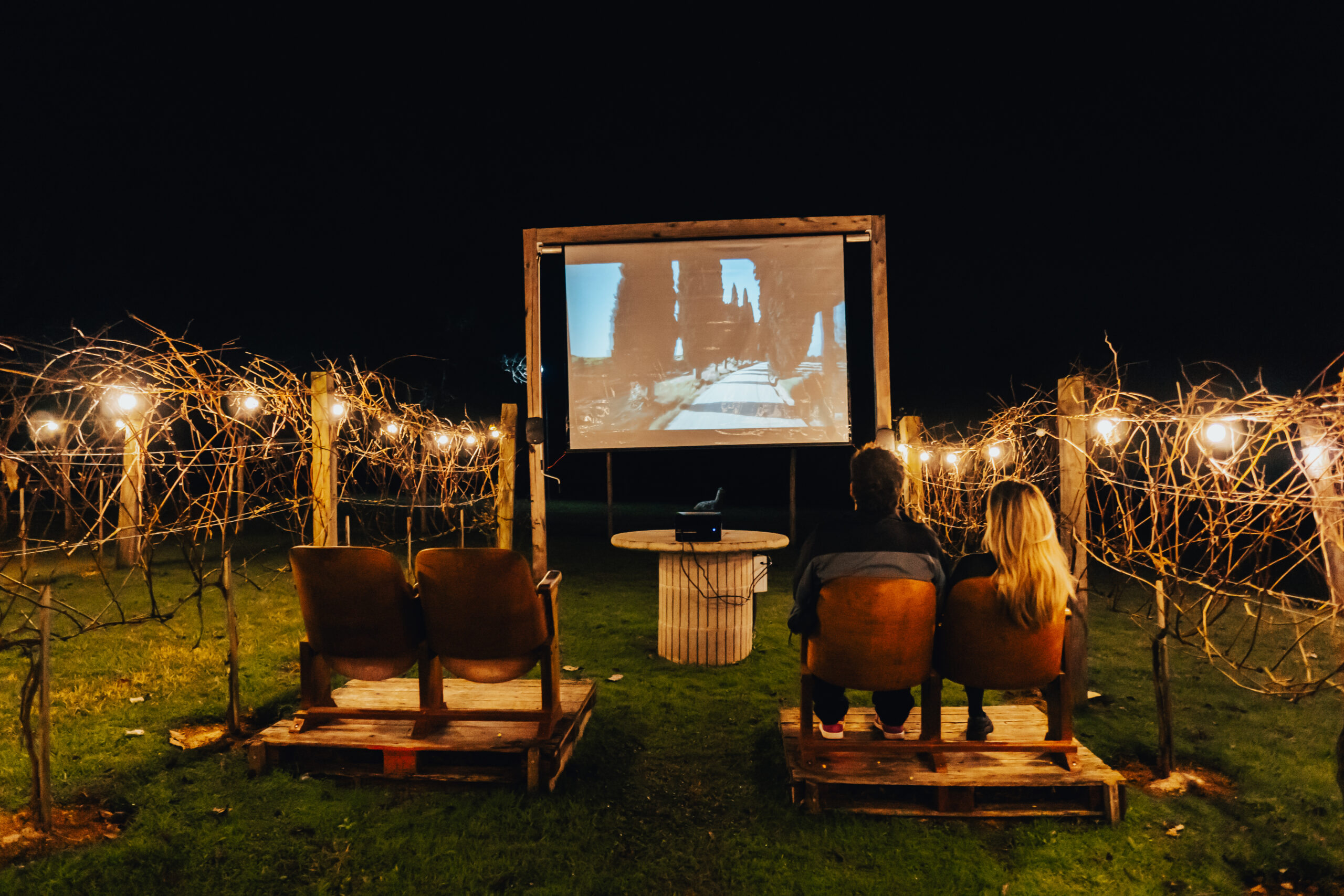 Cinema no meio dos parreirais não é entretenimento.